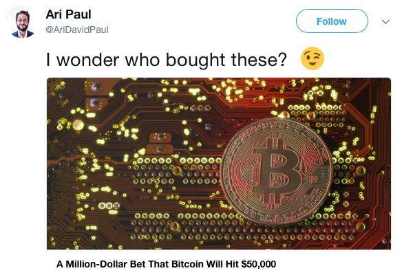 Last year on December 22 a firm purchased a $1 million dollar options trade on the Ledger X platform that wagered the BTC/USD market price will be $50,000 by the last month of 2018. This week Juthica Chou, the president of Ledger X chatted with Jared Blikre at the Yahoo Finance All Markets Summit’s cryptocurrency presentations and explained to the audience how the bitcoin trade was settled for a premium. Also Read: Coincheck Announces JPY Withdrawals Will Resume Next Week The Mysterious Bet Placed Last December That Wagered Bitcoin Will Touch…