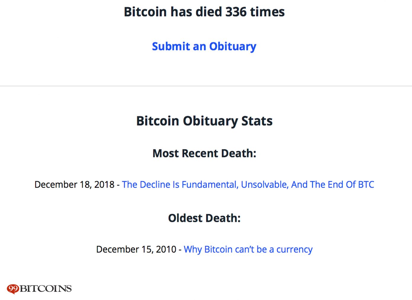 Bitcoin Obituaries Records 90 ‘Deaths’ in 2018